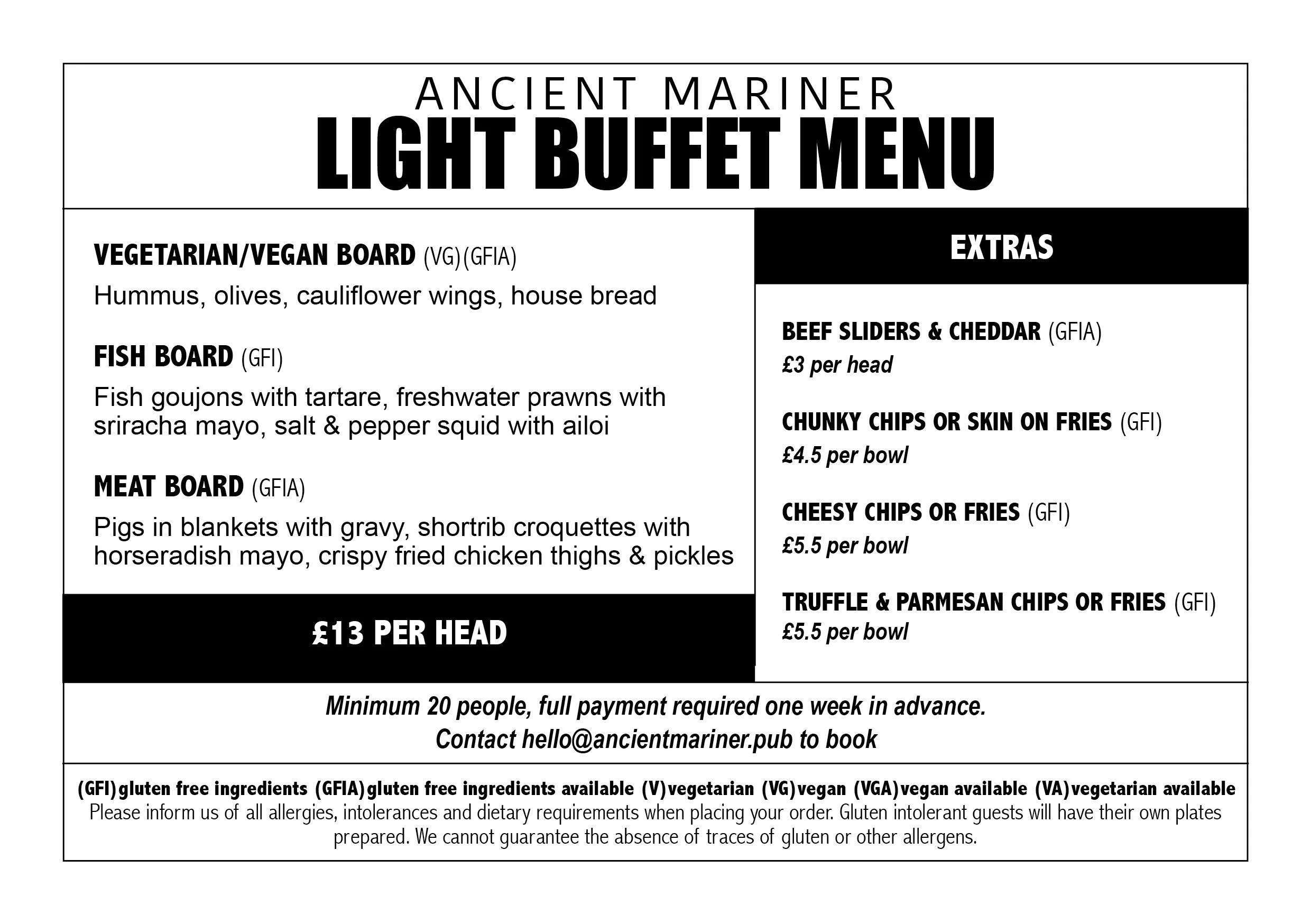 Contact us to discuss your booking at hello@ancientmariner.pub to reach management directly. Please note we do not host children’s parties.